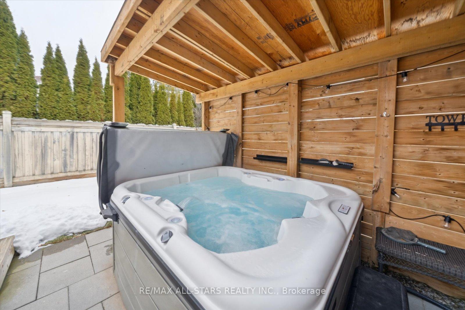 Welcome to this stunning 1,508 sq. ft. executive two-storey residence, offering three bedrooms and three bathrooms, ideally situated in a desirable, family-friendly neighbourhood. Built in 2016, this impeccably maintained home showcases modern upgrades and thoughtful design throughout.A grand foyer with soaring vaulted ceilings and expansive windows creates an inviting first impression, leading into a bright, open-concept main level. The custom gourmet eat-in kitchen features upgraded cabinetry, a stylish backsplash, stainless steel appliances, and a gas range, seamlessly flowing into the dining area. From here, step out to a private, fully fenced backyard-an entertainer's dream complete with a spacious deck, hot tub, privacy screen, and gated access on both sides. The elegant primary suite offers a walk-in closet and a well-appointed three-piece ensuite. Additional highlights include custom blinds throughout, upgraded fixtures, California corners, remarkable modern finishes, and direct access to an oversized 1.5-car garage. The home also boasts a four-car driveway with no sidewalk interruption, enhancing both convenience and curb appeal.The unfinished basement awaits your personal vision and features large windows, a bathroom rough-in, an upgraded 200-amp electrical panel, and central vacuum rough-in. Practical upgrades include a furnace with HRV system and a Samsung washer and dryer with pedestals. Conveniently located close to parks, schools, equestrian facilities, and all amenities, this flourishing community offers an exceptional lifestyle. A truly delightful home that blends elegance, comfort, and functionality.