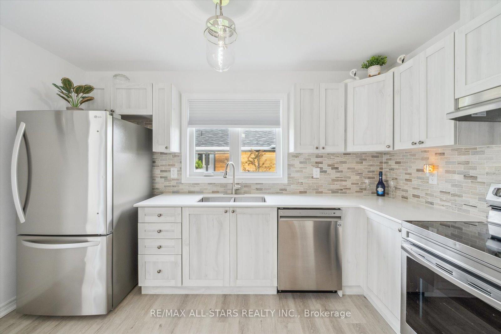 Discover this beautifully maintained 2-bedroom, 2-bathroom raised bungalow, ideally situated on a premium landscaped corner lot in the sought-after community of Lake Point Village. With charming curb appeal, a welcoming covered front porch and spacious two-tier deck, this delightful home offers comfort, style, and easy living. Step inside to a bright, generous foyer leading to a thoughtfully designed layout filled with natural light. The sun-filled living room flows seamlessly into a tastefully finished eat-in kitchen featuring quartz countertops, an under-mount sink, abundant cabinetry, and modern finishes-with a convenient walk-out to the yard, perfect for morning coffee or summer barbecues.The generous primary bedroom provides a peaceful retreat with a walk-in closet, built-in shelving, and private ensuite bath. A second bedroom and full bathroom offer flexible space for guests, hobbies, or a home office. Luxury vinyl flooring throughout, main floor laundry, and direct built-in access into the attached garage- complete with a custom pine feature wall, adding both style and practicality. Enjoy relaxing outdoors with a poured concrete patio, concrete walkway, and upgraded privacy screen with BBQ area. A custom-built cedar shed and expansive crawl space provide excellent additional storage, while the 14,000 kW Champion Generac generator provides for reliable backup power and adds valuable peace of mind. Meticulously maintained and designed for comfortable, low-maintenance living, this wonderful home is ideally located close to beaches, provincial parks, and local amenities, and just 15 minutes to Orillia and Casino Rama Resort. Enjoy the welcoming lifestyle and strong sense of community that make Lake Point Village such a special place to call home.