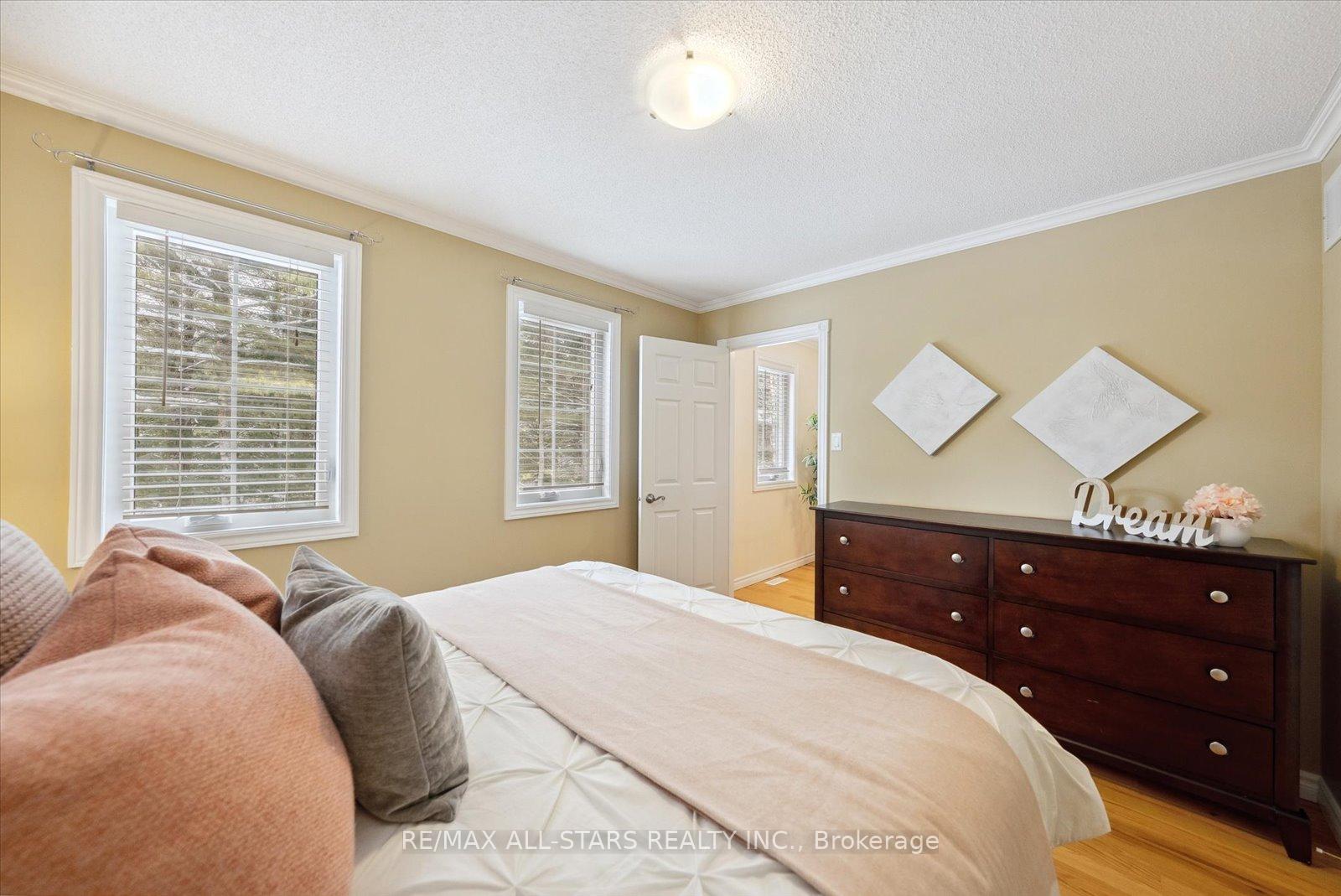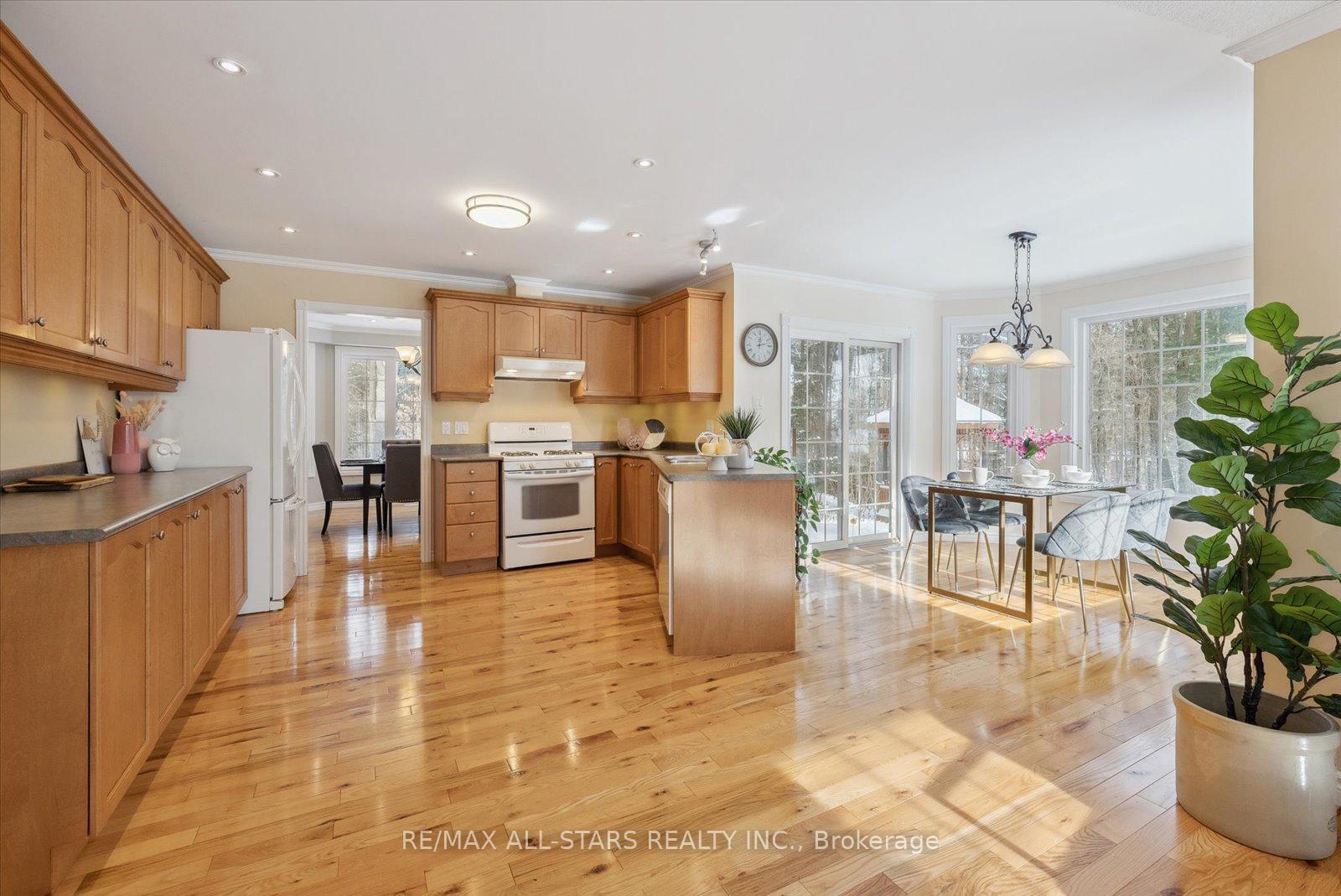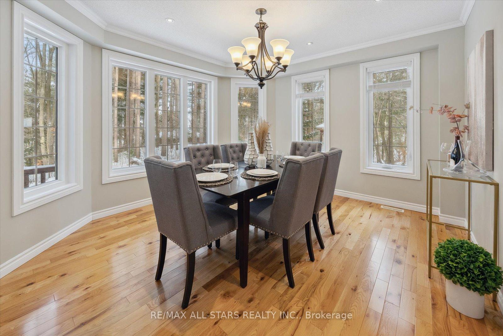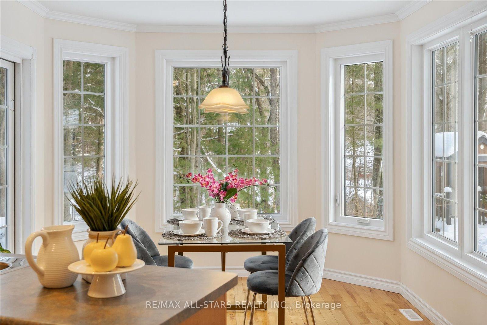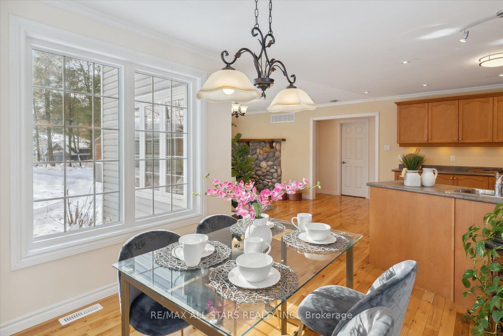 Nestled in the sought-after village of Hillsdale, this exceptional 1.5+ acre estate, one of the largest in the community offers a rare opportunity to own a private, meticulously maintained 2500sq/ft "Winslow" model home by Hedburn. Set among mature trees and backing onto lush greenery, the property is accessed by a 240-ft driveway and features a triple car garage with oversized 9-ft doors. Beautifully landscaped grounds include a wrap-around covered porch with screened-in area, custom shed, and hexagon cedar gazebo, both with steel roofs, ideal for outdoor living. A grand double-door entry opens to a bright, thoughtfully designed main floor.The open-concept kitchen and breakfast area flows into a warm great room with a WETT certified wood-burning stove. Formal living and dining room add elegance, while a main floor bedroom/office, laundry room with garage access, and powder room offer everyday convenience. Upstairs, the spacious primary suite features a walk-in closet and large ensuite bath, complemented by three additional well-sized bedrooms and a full bath. Timeless finishes include gleaming hardwood flooring, crown moulding, pot lights, and 37 updated windows. The partially finished basement offers a large rec room, workshop, and ample storage. Additional features include a steel roof (50 year warranty), 8-zone irrigation, timber accents, high-speed fibre optic internet, city water, natural gas, high-efficiency furnace, owned hot water heater, and low property taxes. Direct access to walking trails and OFSC routes. Conveniently located near Barrie, Orillia, Midland, Georgian Bay, and within walking distance to the local school. A rare offering where privacy, space, and quality meet. An exceptional lifestyle awaits!