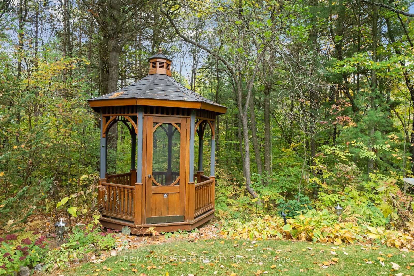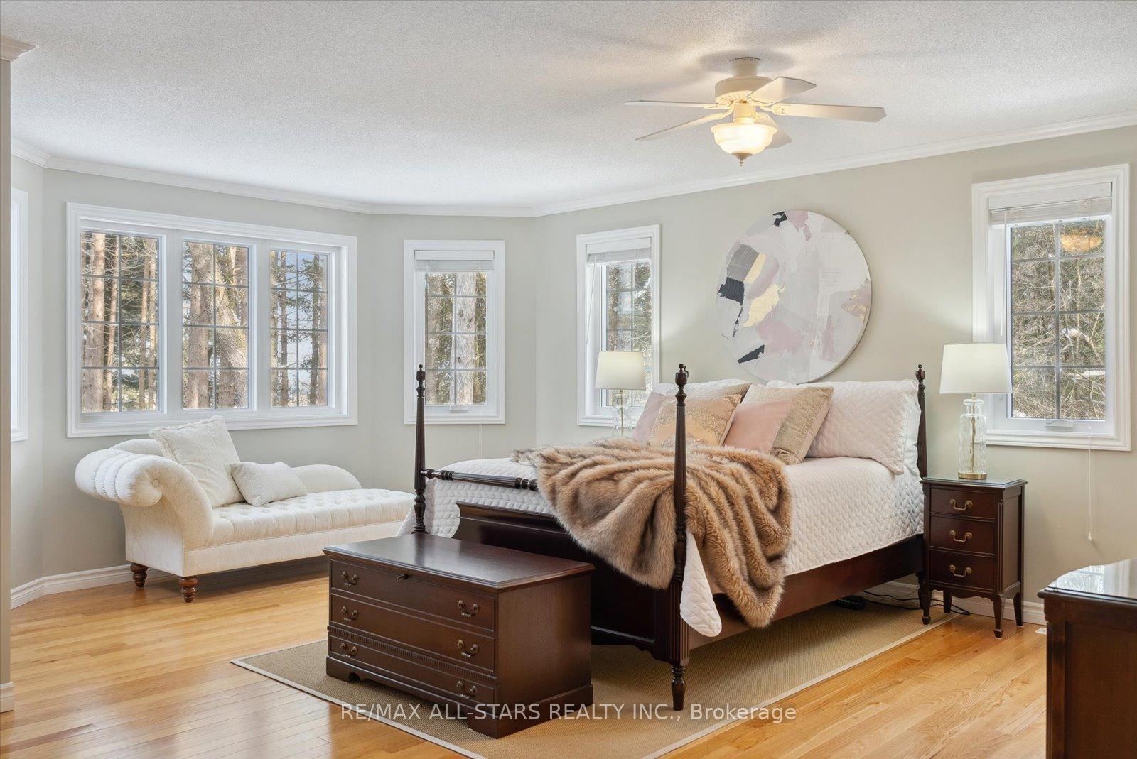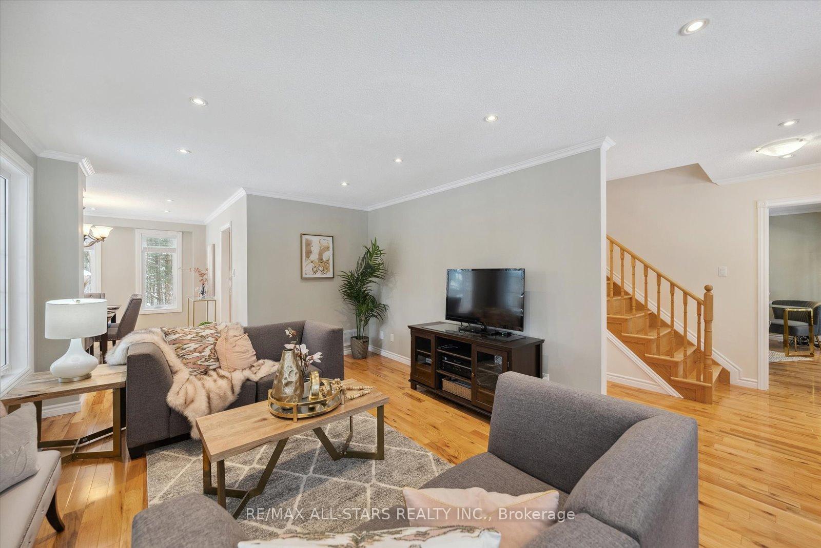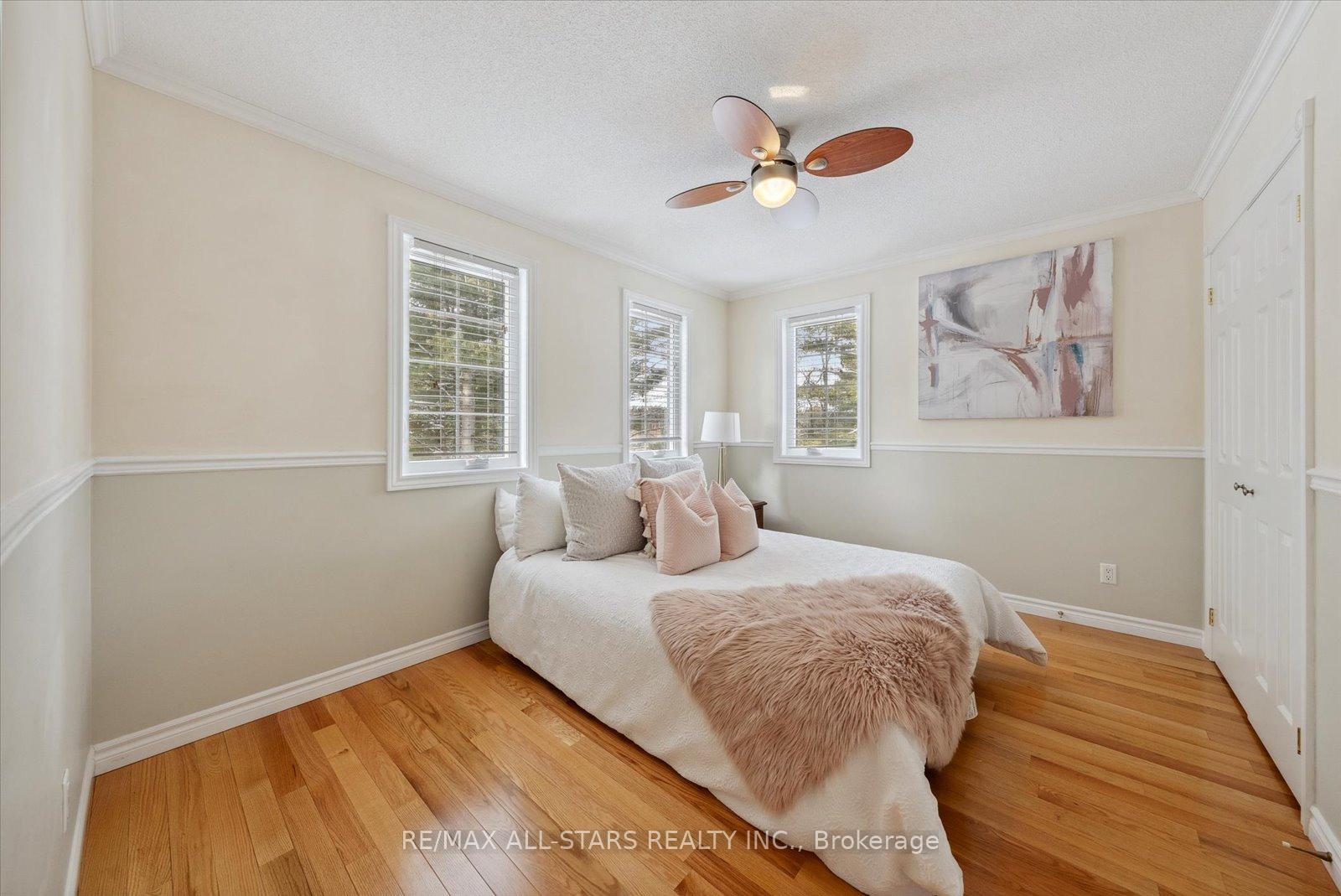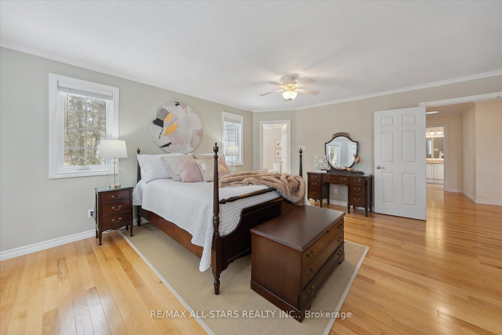 Nestled in the sought-after village of Hillsdale, this exceptional 1.5+ acre estate, one of the largest in the community offers a rare opportunity to own a private, meticulously maintained 2500sq/ft "Winslow" model home by Hedburn. Set among mature trees and backing onto lush greenery, the property is accessed by a 240-ft driveway and features a triple car garage with oversized 9-ft doors. Beautifully landscaped grounds include a wrap-around covered porch with screened-in area, custom shed, and hexagon cedar gazebo, both with steel roofs, ideal for outdoor living. A grand double-door entry opens to a bright, thoughtfully designed main floor.The open-concept kitchen and breakfast area flows into a warm great room with a WETT certified wood-burning stove. Formal living and dining room add elegance, while a main floor bedroom/office, laundry room with garage access, and powder room offer everyday convenience. Upstairs, the spacious primary suite features a walk-in closet and large ensuite bath, complemented by three additional well-sized bedrooms and a full bath. Timeless finishes include gleaming hardwood flooring, crown moulding, pot lights, and 37 updated windows. The partially finished basement offers a large rec room, workshop, and ample storage. Additional features include a steel roof (50 year warranty), 8-zone irrigation, timber accents, high-speed fibre optic internet, city water, natural gas, high-efficiency furnace, owned hot water heater, and low property taxes. Direct access to walking trails and OFSC routes. Conveniently located near Barrie, Orillia, Midland, Georgian Bay, and within walking distance to the local school. A rare offering where privacy, space, and quality meet. An exceptional lifestyle awaits!
