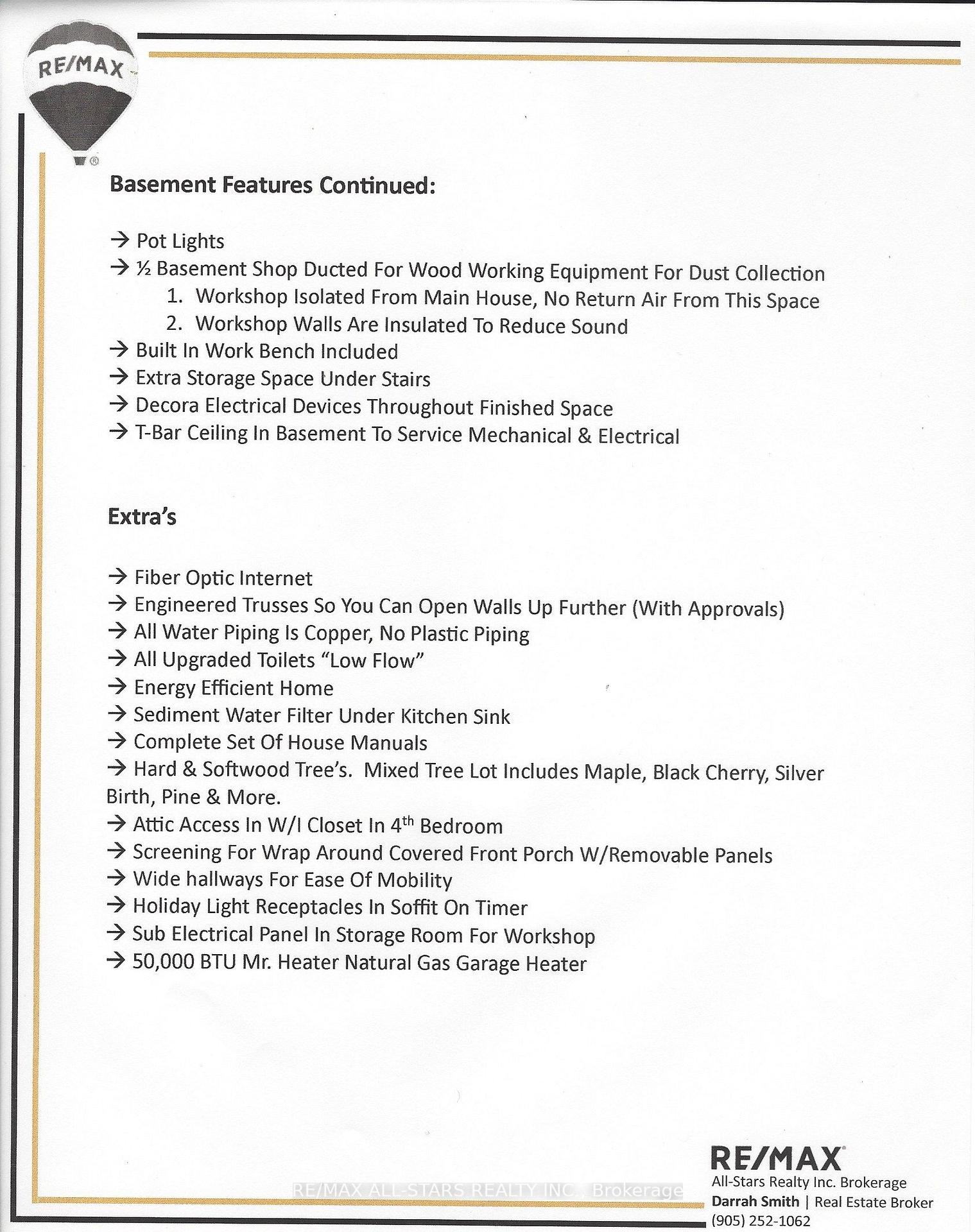 Air Exchanger, Auto Garage Door Remote, Carpet Free, ERV/HRV, Generator - Full, Solar Tube, Water Heater, Workbench